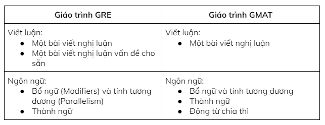 Điểm khác nhau về các phần thi giữa GRE và GMAT