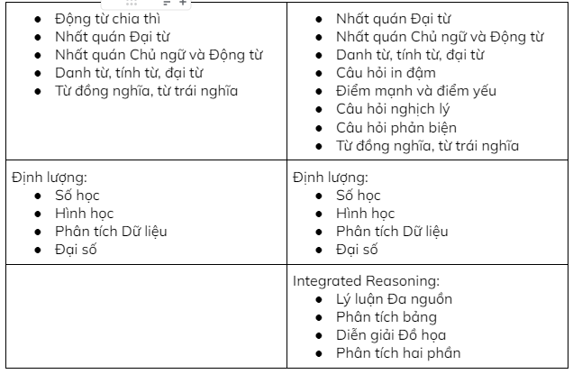Phần thi Integrated Reasoning kết hợp cả hai kỹ năng Ngôn ngữ và Định lượng
